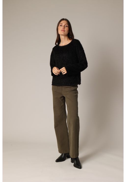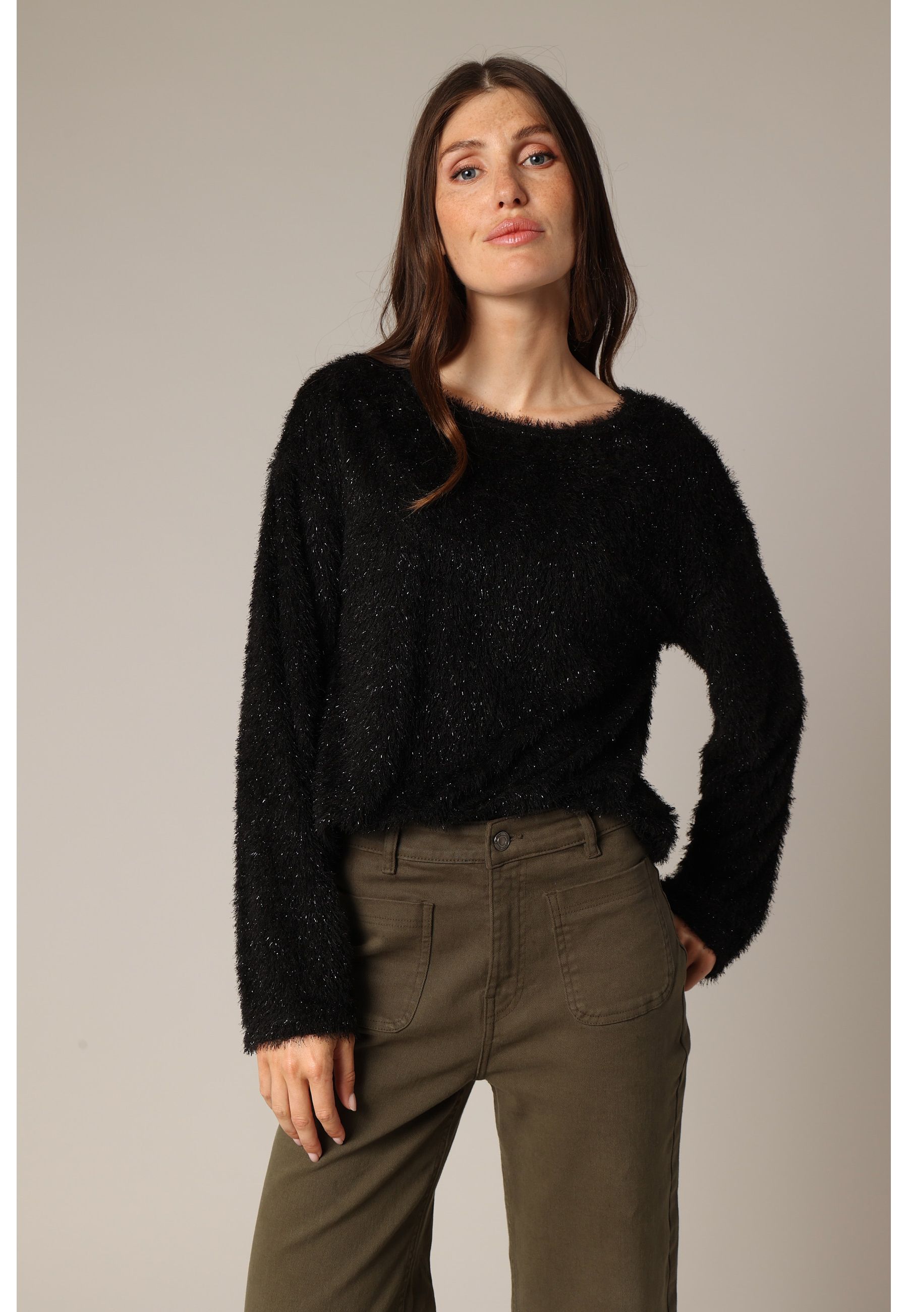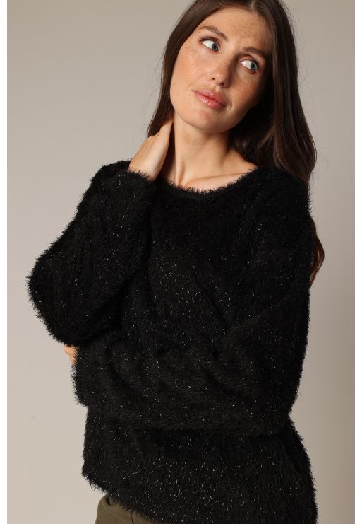 Fluffy sweater with a round neck, long sleeves and a loose fit.