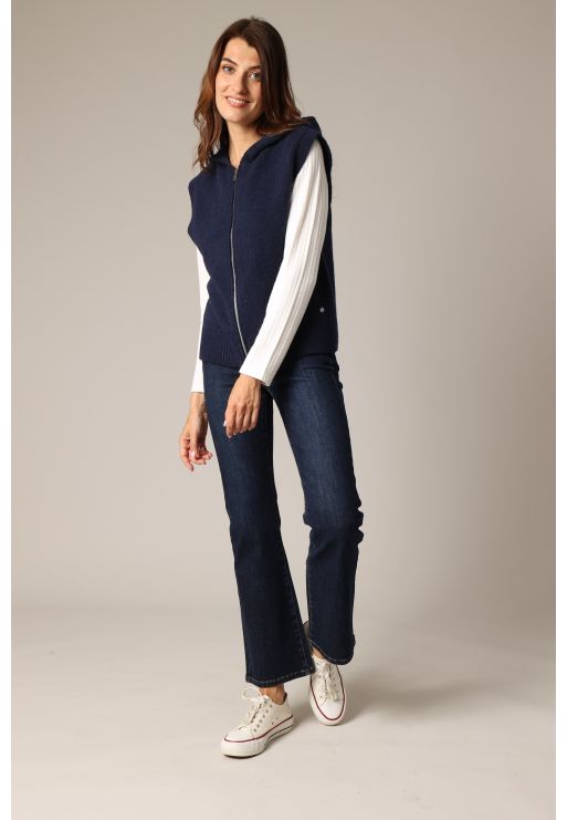 The SELINDA sleeveless zip-up hooded vest with a casual-chic style is made from a soft, fluffy knit, playing on the contrasts between casual and studied allure. Its straight cut and hood add a relaxed touch, while the zip fastening gives a clean, structured line. Wear it alone or layered, to warm up a silhouette without weighing it down. Perfect for those who want to be warm... but not too warm.