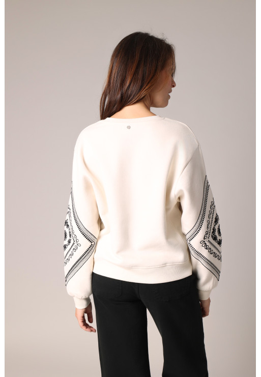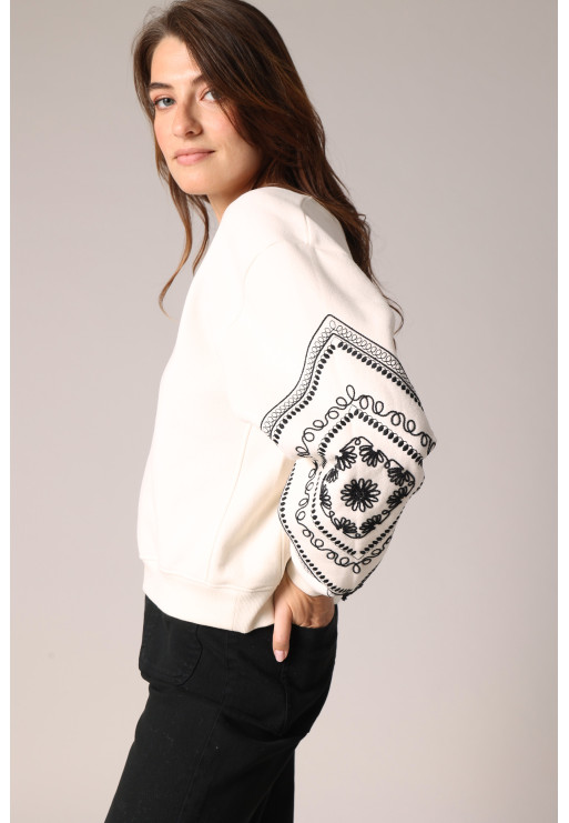 Soft fleece sweatshirt with long balloon sleeves decorated with embroidered patterns