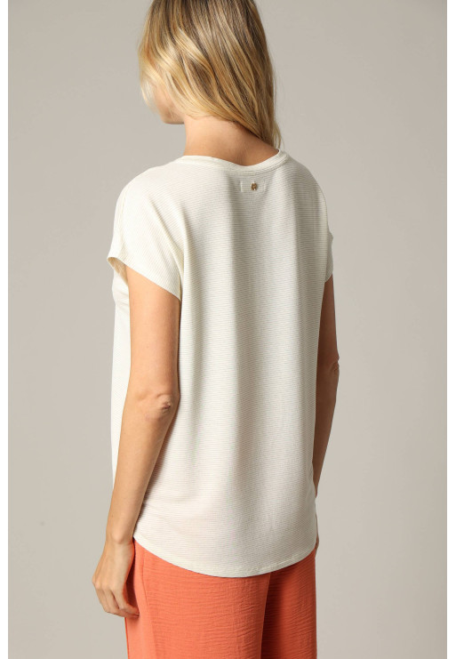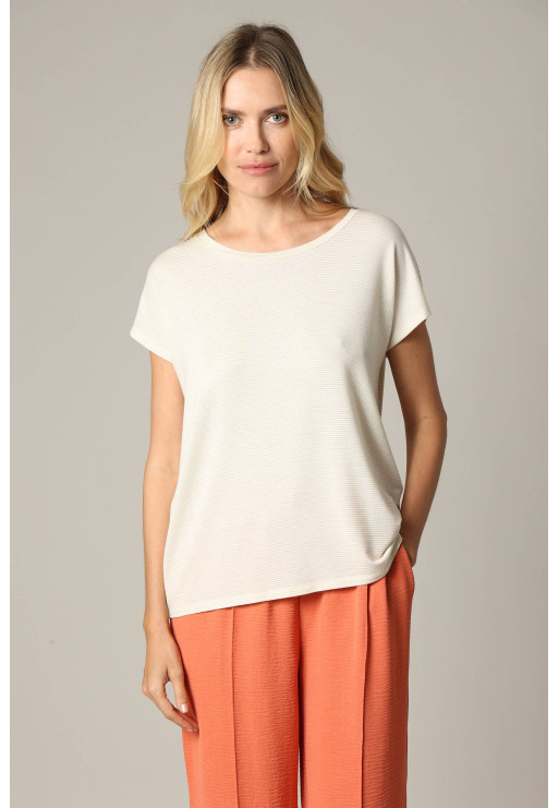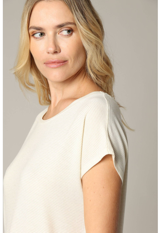 With its fabric inlaid with lurex threads, this basic top stands out with dynamic striped patterns, offering a sophisticated look. Its loose cut and short sleeves ensure ultimate comfort all day long.