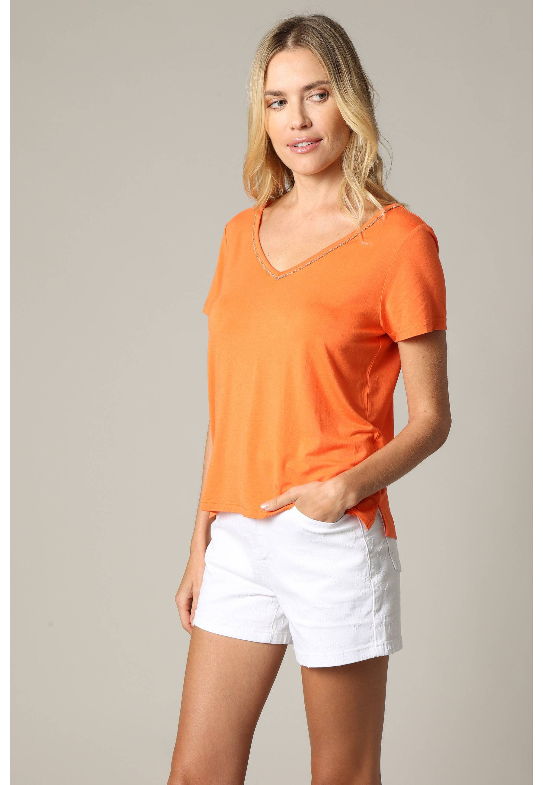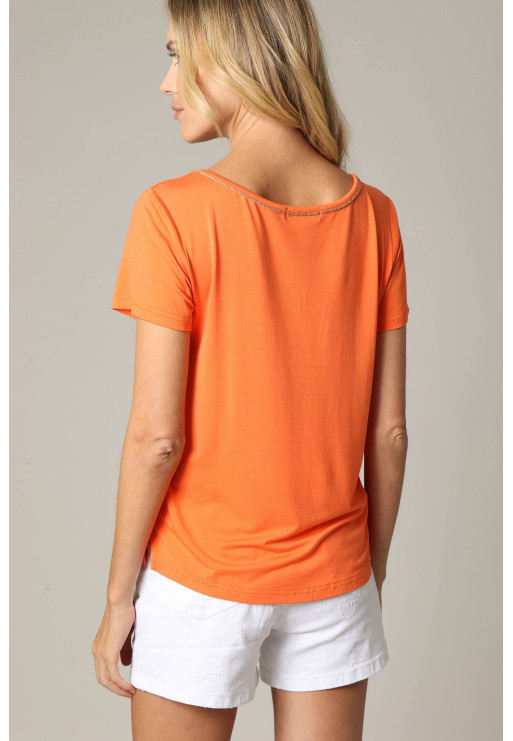 V-neck T-shirt with shiny piping for women