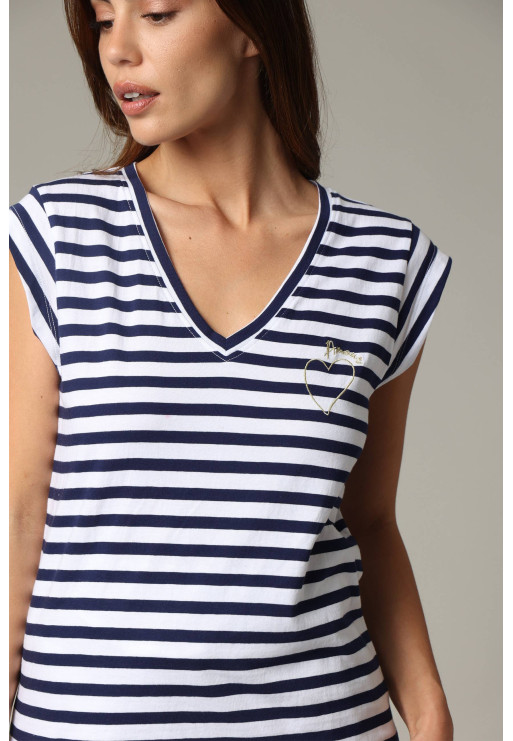 VAMIKA talks about love with its embroidered heart on the front of the T-shirt. Its breathable and natural material guarantees comfort all day long. With its cuffed sleeves, it displays a certain relaxation. Its V-neck and flashy colors make it a resolutely feminine t-shirt.