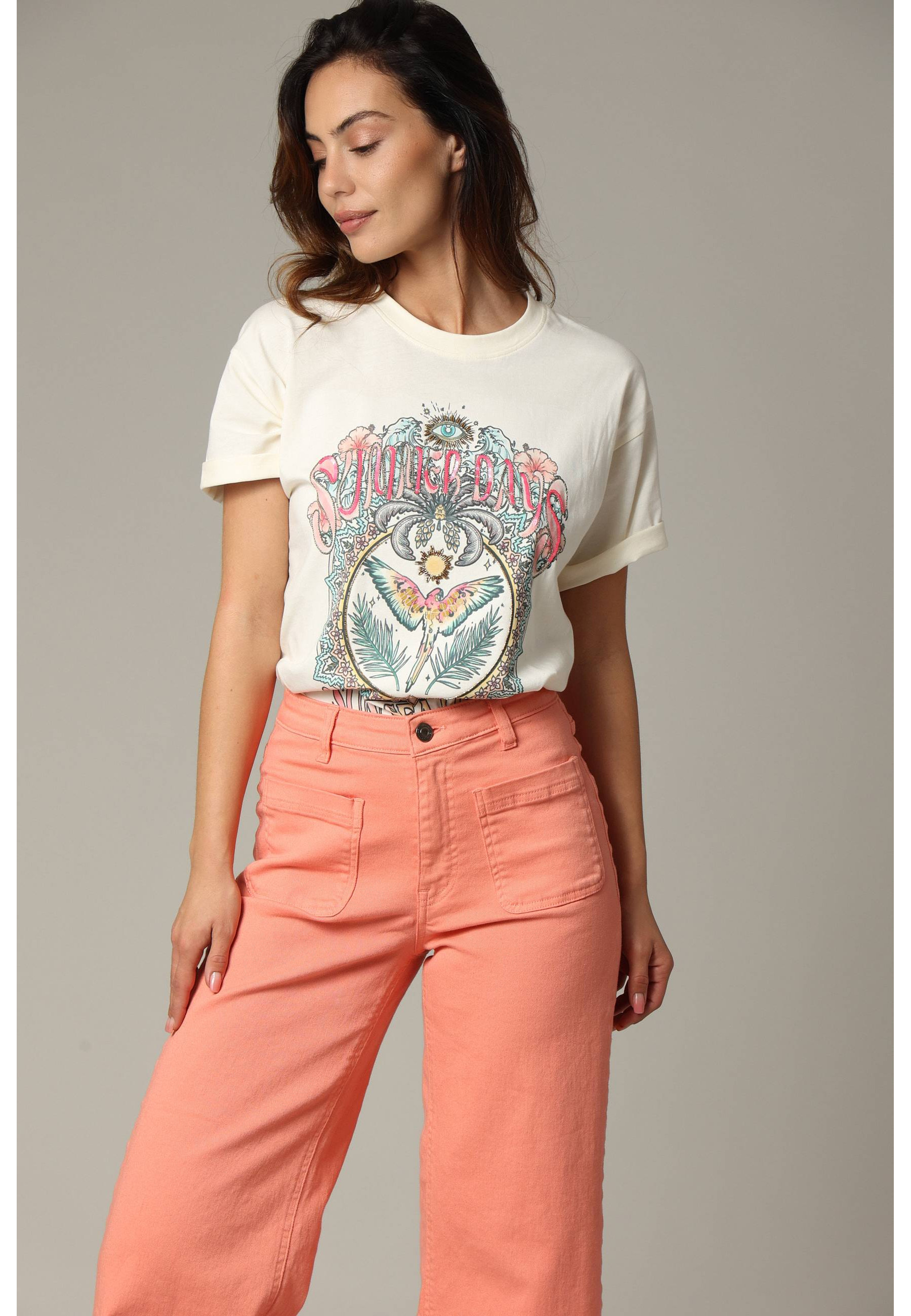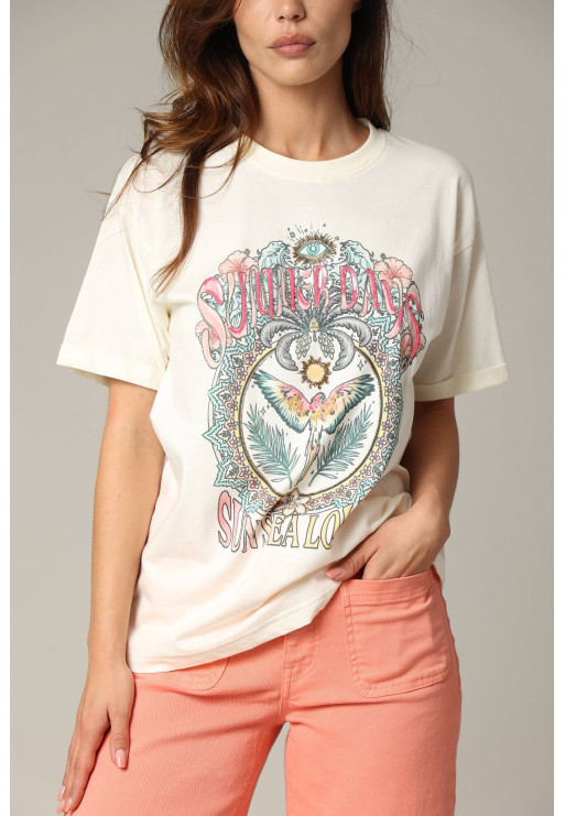 Exotic oversized t-shirt with short sleeves and a round neck, 100% cotton