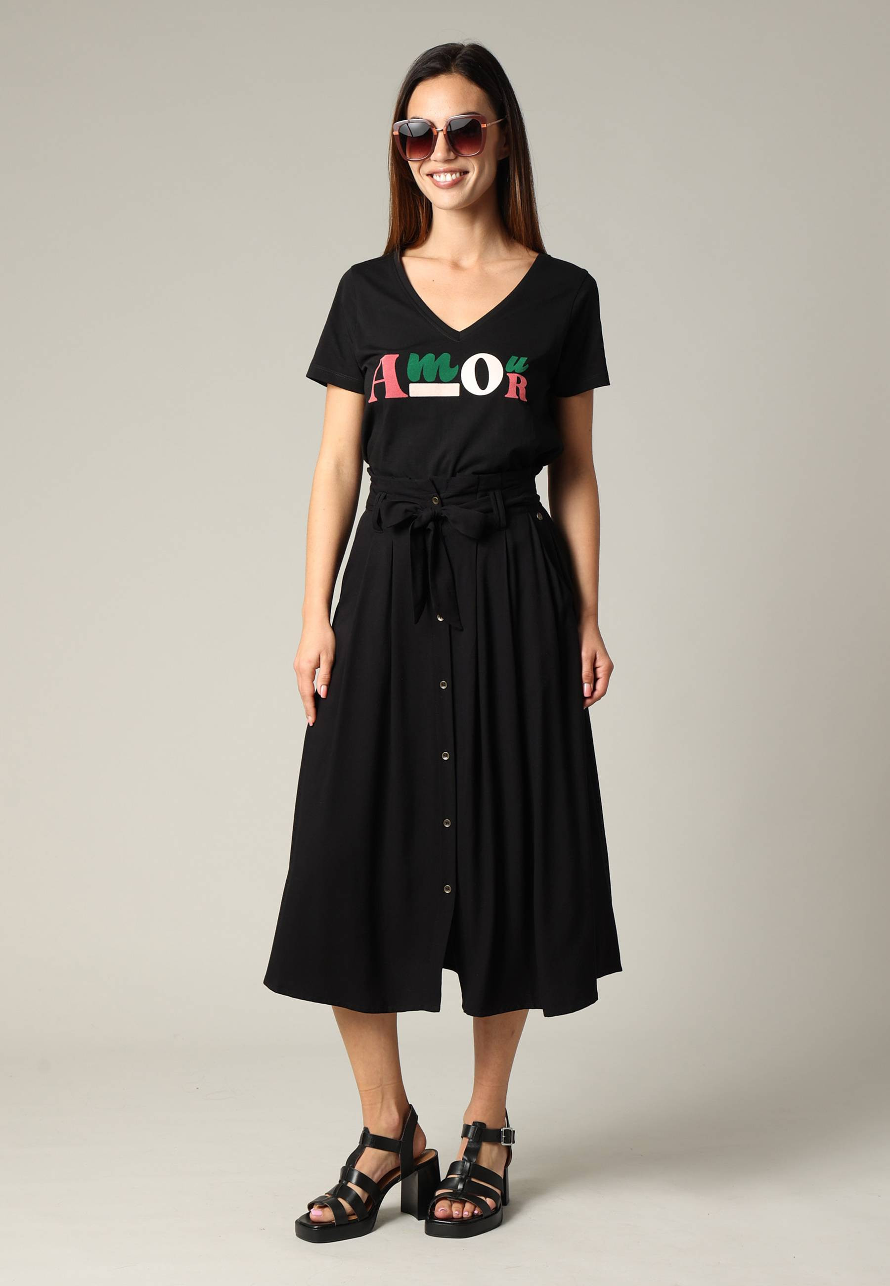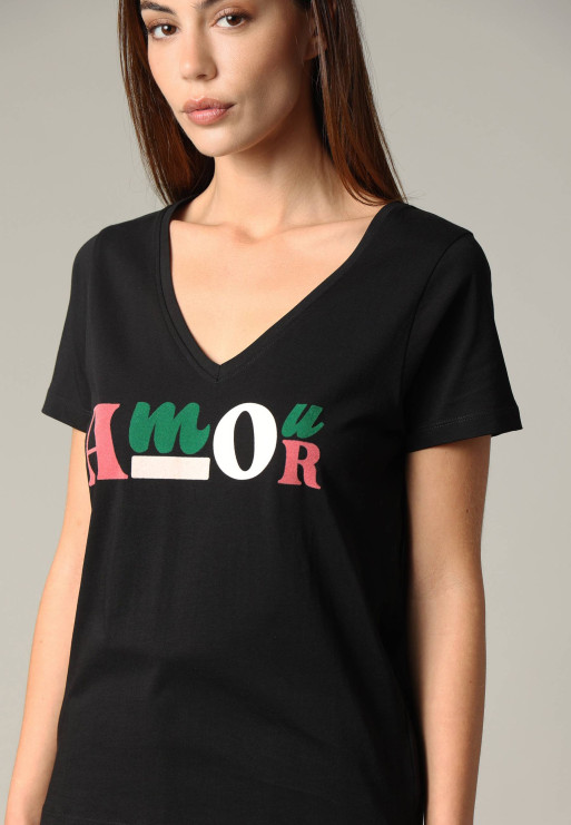 The ART t-shirt, made of cotton jersey, offers perfect softness and comfort for everyday use. With its classic fit and short sleeves, this casual model adapts to all your looks. Its V-neck and colorful flocked "love" print add a touch of originality and good humor to this timeless basic. Ideal for a casual and assertive style.