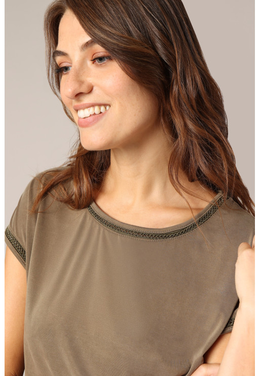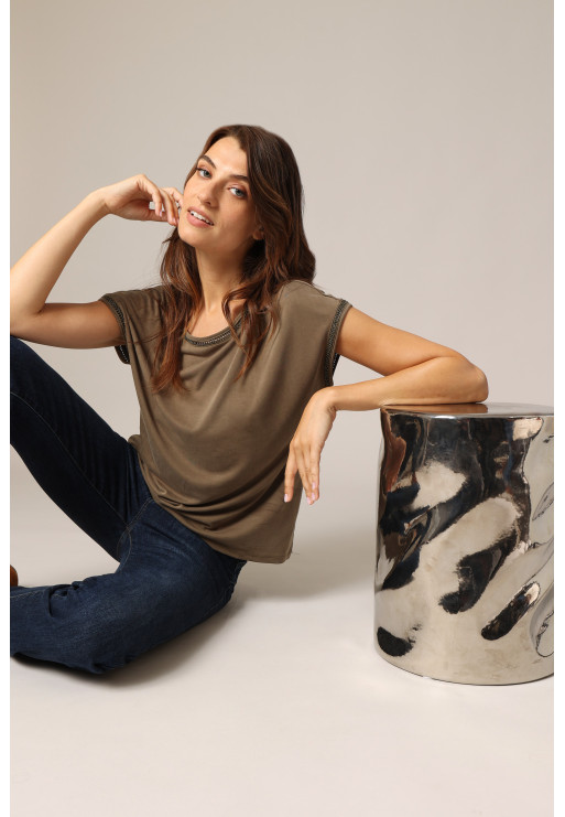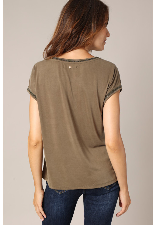 This straight-cut, flowing T-shirt captivates with its elegant simplicity. Its round neck and short sleeves are accented with tone-on-tone embroidered details, adding a refined touch to the design. Lightweight and comfortable, it's perfect for any everyday occasion.A must-have for any casual-chic wardrobe, easy to pair with jeans or a skirt.