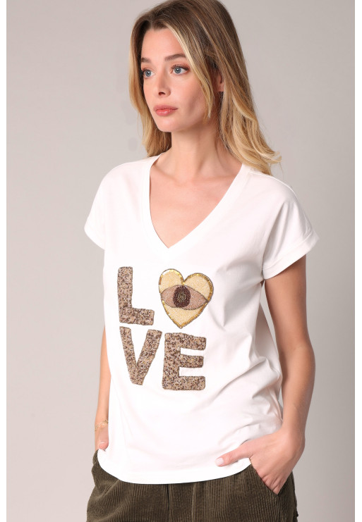 Women's T-shirt with LOVE pearl embroidery