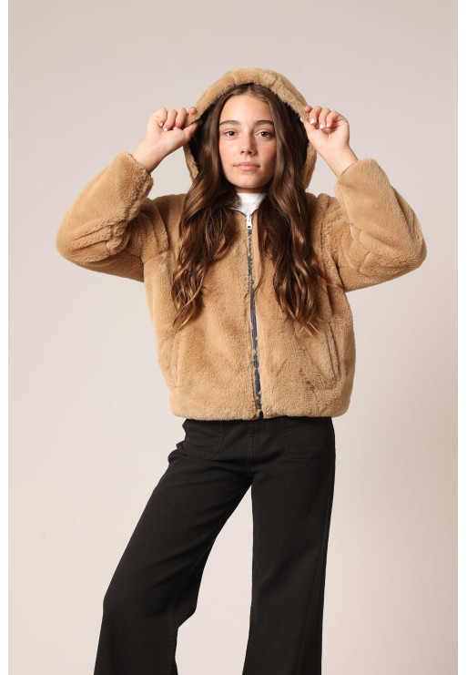 Blouson réversible métallisé et imitation fourrure pour fille