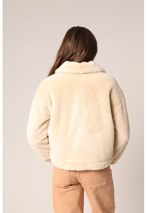 Enveloppez-vous de chaleur et de style avec cette veste RUSALKA en imitation fourrure, au volume douillet et à l’allure irrésistible. Fermée par un zip discret, elle affiche un col chemise classique et deux grandes poches à rabat sur le devant qui lui donnent un esprit casual chic très tendance.