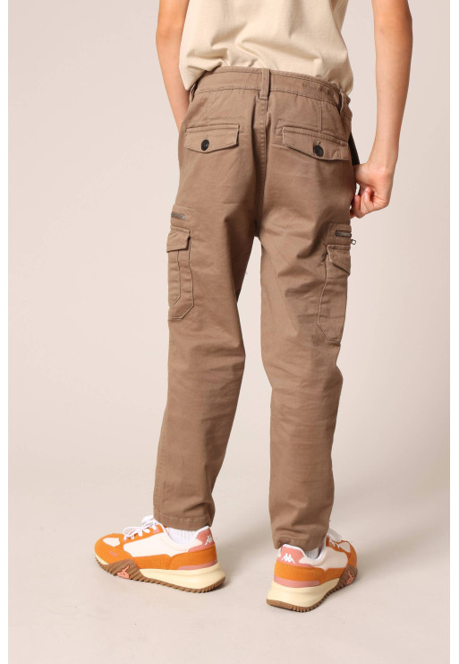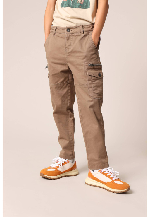 Ce modèle casual présente une coupe droite légèrement fuselée, avec des poches plaquées à rabat au dos et sur les côtés, ainsi qu'une poche zippée sur chaque cuisse pour un style utilitaire.