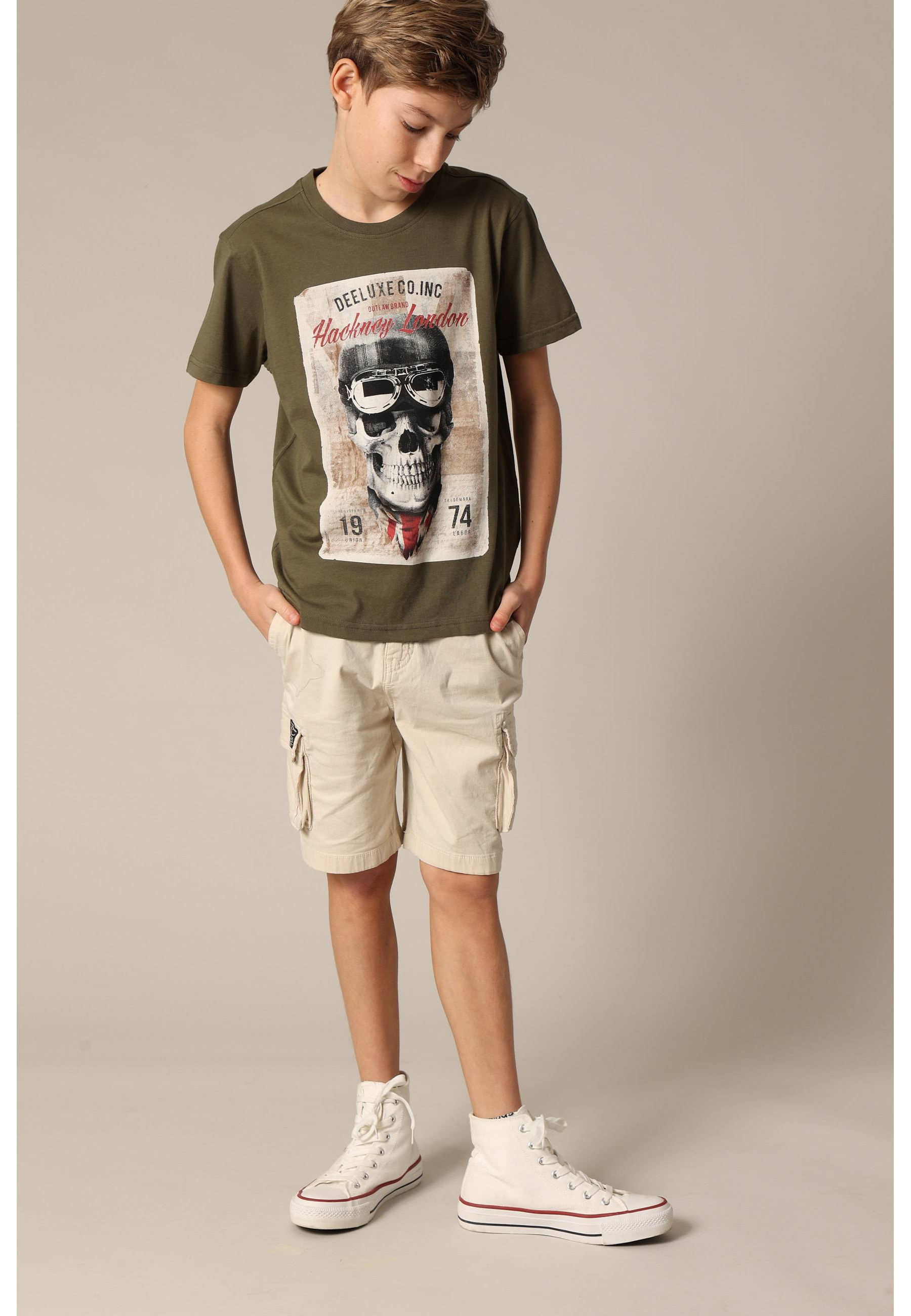 Son imprimé "Hackney London", au design vintage, apporte une touche originale et urbaine. Décliné en trois coloris (blanc, rouge et kaki), il s'adapte parfaitement aux envies de style des plus jeunes.