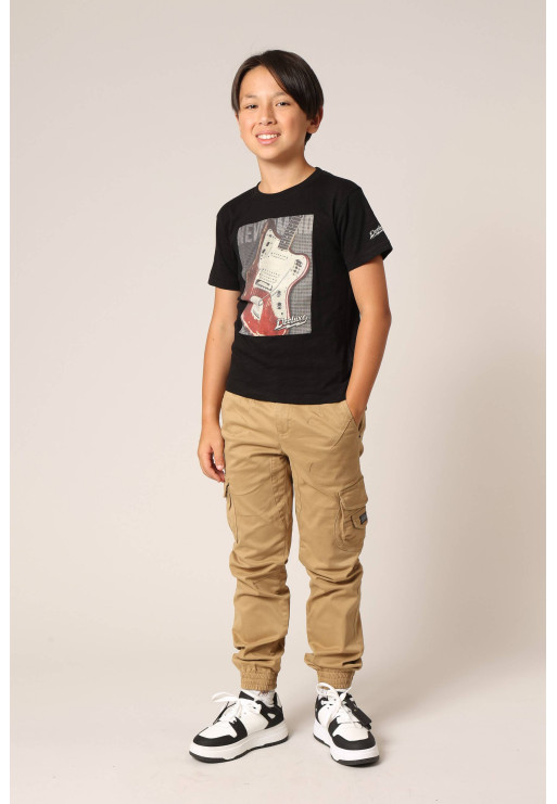 Ce t-shirt pour garçon allie une allure urbaine à l’âme rebelle des icônes du rock. L'imprimé central met à l’honneur une guitare électrique au look patiné, sur fond de lettrage contrasté, évoquant l’énergie brute des concerts live et l’univers grunge. Sa coupe droite et son col rond assurent un porté facile au quotidien. Le logo brodé sur la manche renforce le caractère signature de cette pièce. Un t-shirt qui claque, à associer à un jean brut ou un pantalon cargo pour un style qui joue juste.