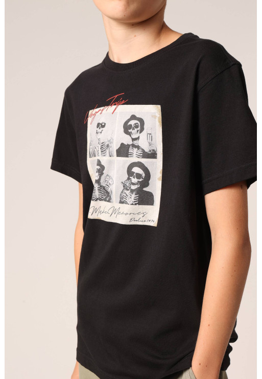 Inspiré des souvenirs d’un week-end déjanté, ce t-shirt en 100 % coton mise sur un visuel façon photomaton, où des squelettes bien vivants s’amusent à Las Vegas. Entre lunettes, chapeaux et billets, chaque détail du motif raconte une histoire pleine d’ironie. Le tout est imprimé sur une base à col rond et coupe droite, agréable à porter et facile à associer. Une pièce graphique et décalée à adopter pour injecter un peu de fun dans vos tenues décontractées.