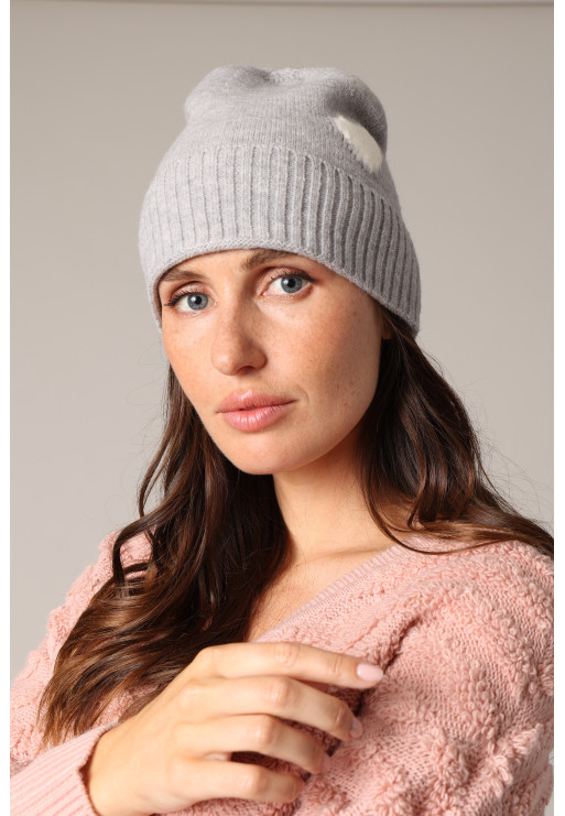 Bonnet côtelé en maille douce avec motif cœur contrasté
