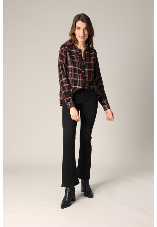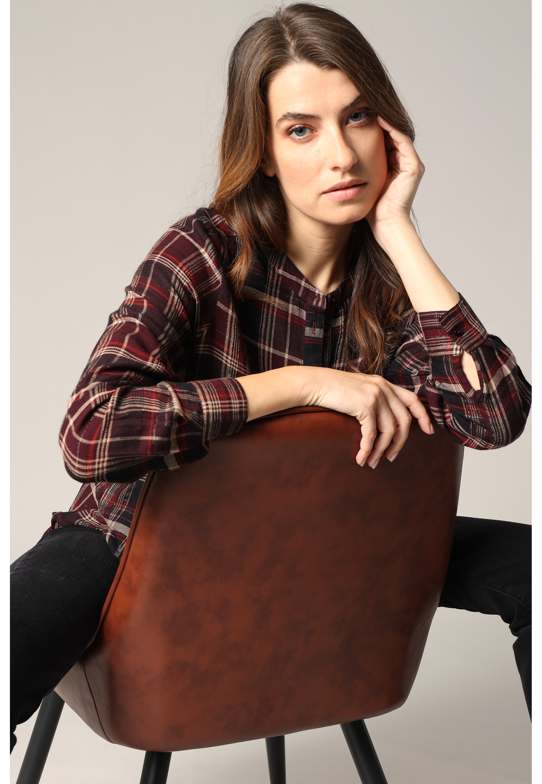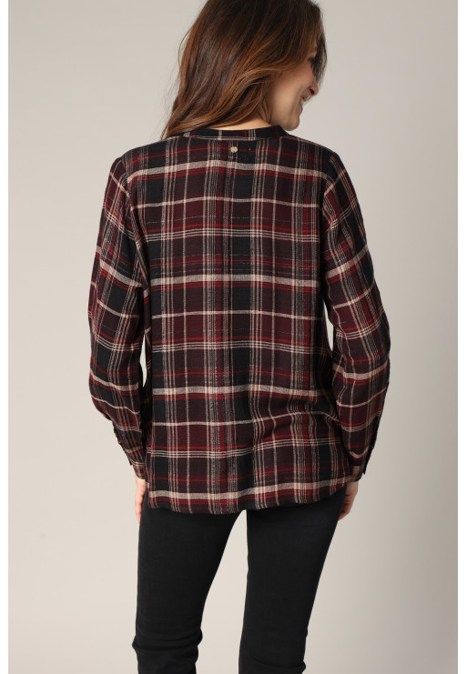 Cette chemise à carreaux LEANDRI revisite un grand classique avec une touche moderne et confortable. Dotée d’une encolure ronde sans col classique, d’une patte de boutonnage discrète et d’un badge signature délicatement cousu dans le dos, elle se distingue par sa coupe droite et fluide, idéale à glisser dans un jean ou à porter en toute décontraction. Les manches longues légèrement froncées aux poignets ajoutent une note féminine à cette pièce casual. On aime son motif à carreaux intemporel, facile à mixer avec un pantalon noir ou un denim brut. Fabriquée dans un tissu doux, elle promet confort et style tout au long de la journée.