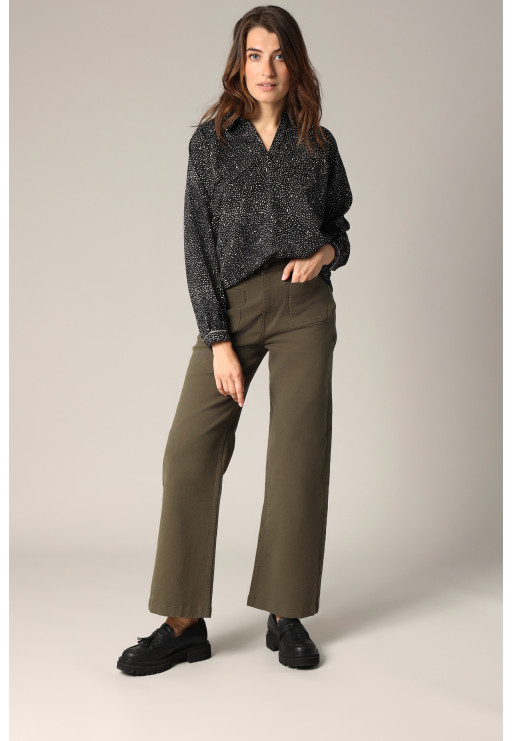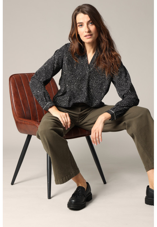 La blouse NESSILI séduit par son imprimé discret et raffiné, mêlant élégance et décontraction. Conçue dans une matière fluide et agréable à porter, elle arbore un col chemise classique et une coupe droite légèrement ample, parfaite pour un look chic sans effort. Les manches longues à poignets boutonnés structurent l’allure tandis que le motif tout en légèreté dynamise la silhouette.