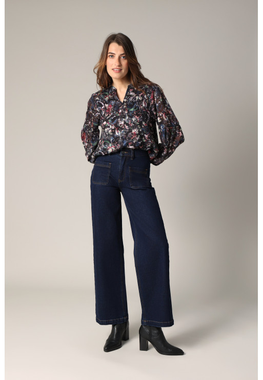 La blouse MANUELLA séduit par son imprimé multicolore aux accents artistiques et ses manches longues subtilement bouffantes, montées sur un poignet boutonné. Le tissu léger et légèrement transparent révèle un travail raffiné sur la texture, tandis que l'encolure fendue sans col modernise l’allure. Sa coupe fluide, confortable et féminine, permet un porté souple aussi bien rentrée dans un pantalon que laissée libre. Parfaite pour dynamiser une tenue avec originalité tout en restant élégante.