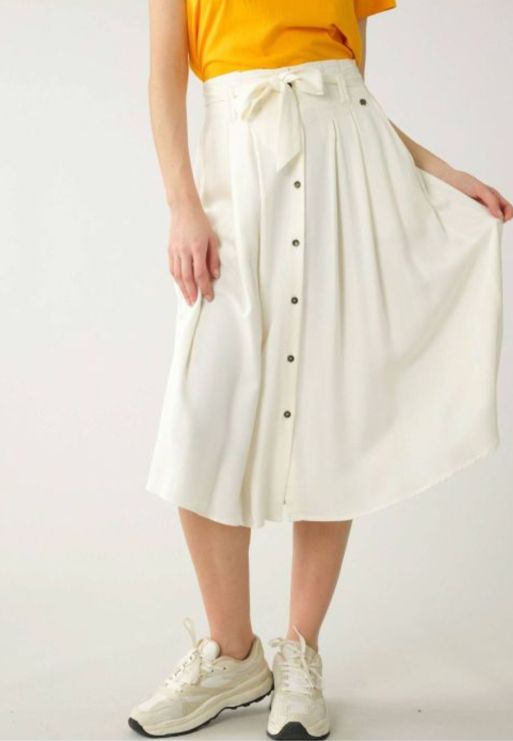 DÉTAILS DE CE PRODUITSa ceinture amovible permet une polyvalence unique, ajustant la taille à votre convenance. Arborant une hauteur de taille standard et une longueur midi flatteuse, cette jupe allie confort et allure chic. Fabriquée dans un tissu crèpe doux en viscose, elle offre un tombé élégant et une sensation agréable sur la peau. Sa fermeture boutonnée milieu devant apporte une touche de sophistication.