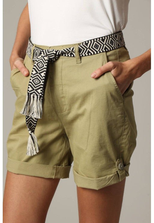 Short mi-long avec ceinture ethnique à motifs et bas à revers