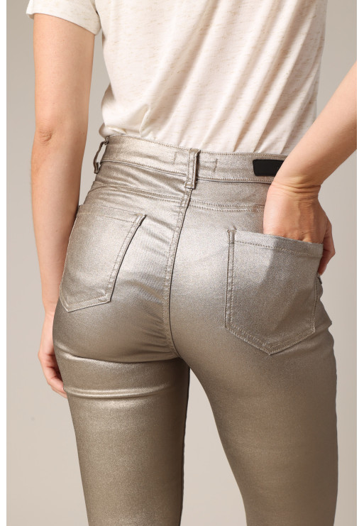 Pantalon slim taille haute, effet métallisé
