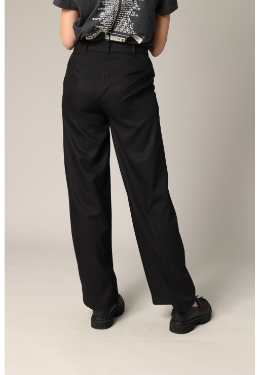 Inspiré du tailoring masculin, ce modèle affiche une taille haute flatteuse, soulignée par une fermeture zippée dissimulée et un bouton sobre sur le devant.