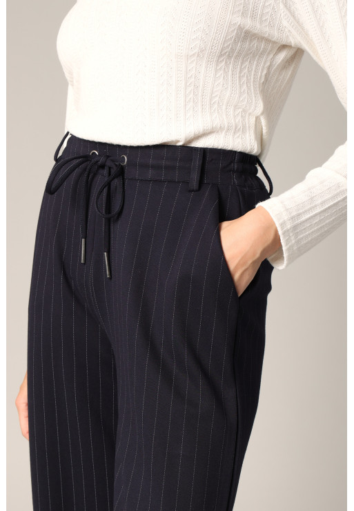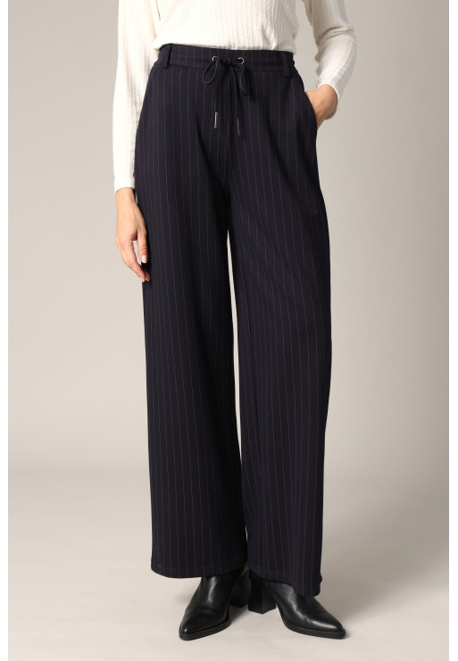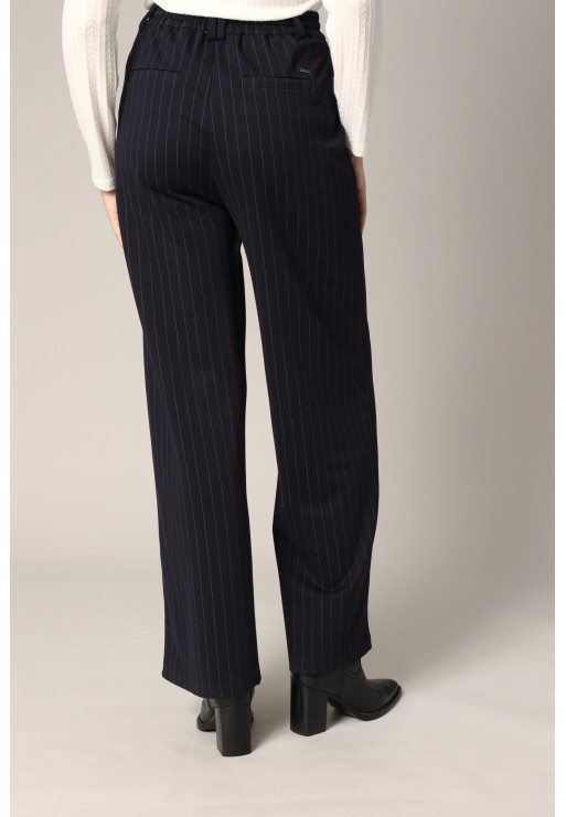 Ce pantalon large à pinces revisite le tailoring avec audace et souplesse. Sa coupe fluide et ample épouse le mouvement avec naturel, tandis que les fines rayures verticales allongent élégamment la silhouette.