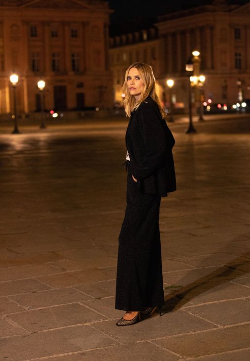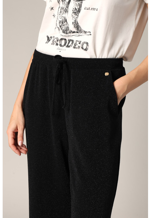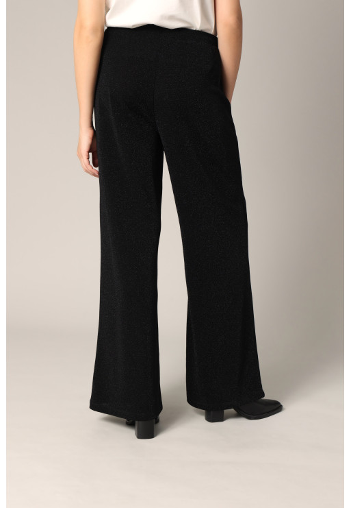 Ce pantalon ample séduit par son tissu noir subtilement pailleté, idéal pour illuminer vos tenues sans trop en faire.