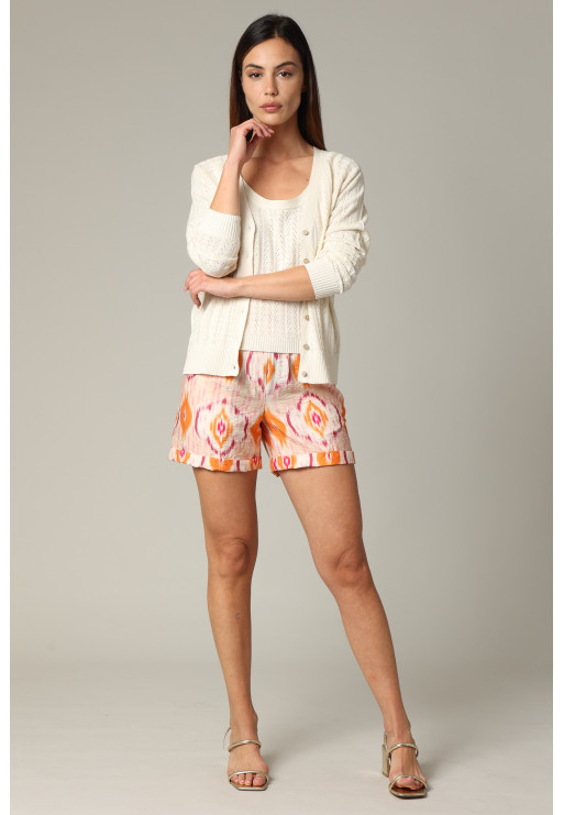Versatile, il se porte très bien avec un short imprimé pour un look décontracté-chic ou avec des pièces plus habillées pour des tenues plus sophistiquées.