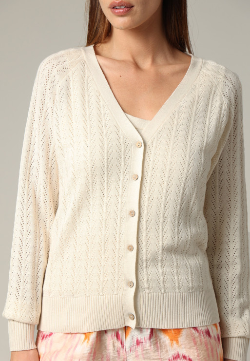 Cardigan à col V en maille délicatement ajourée avec boutons