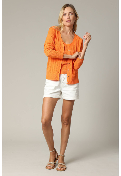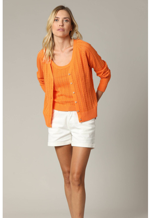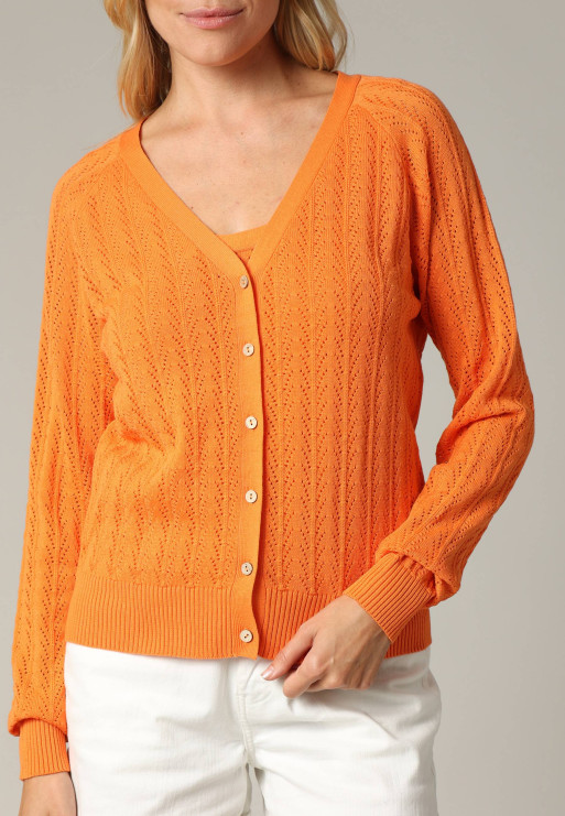 Cardigan à col V en maille délicatement ajourée avec boutons