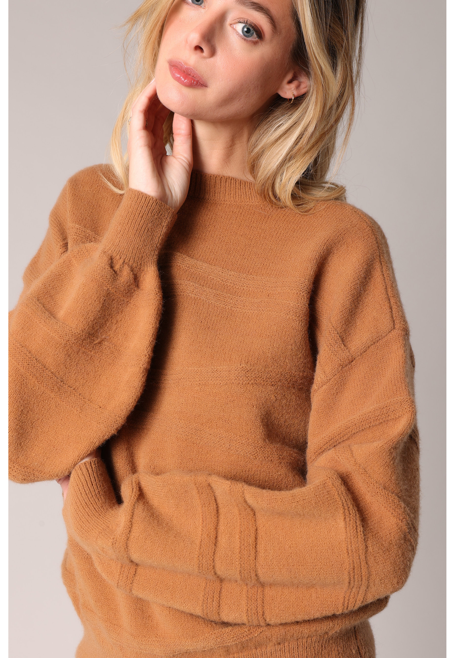 Pull en maille texturée à manches longues bouffantes
