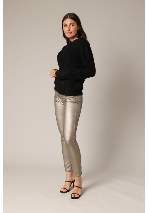 Avec sa coupe droite, son col rond délicatement côtelé et sa maille duveteuse, le pull CARTY incarne l'élégance sans effort. On apprécie le jeu de textures en fines côtes qui lui donne un charme discret mais certain. Idéal pour réchauffer une silhouette avec douceur, il s’associe aussi bien à un pantalon ajusté qu’à une jupe fluide pour des looks confortables mais toujours raffinés.