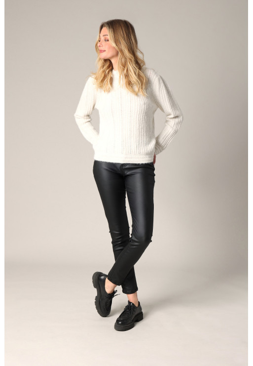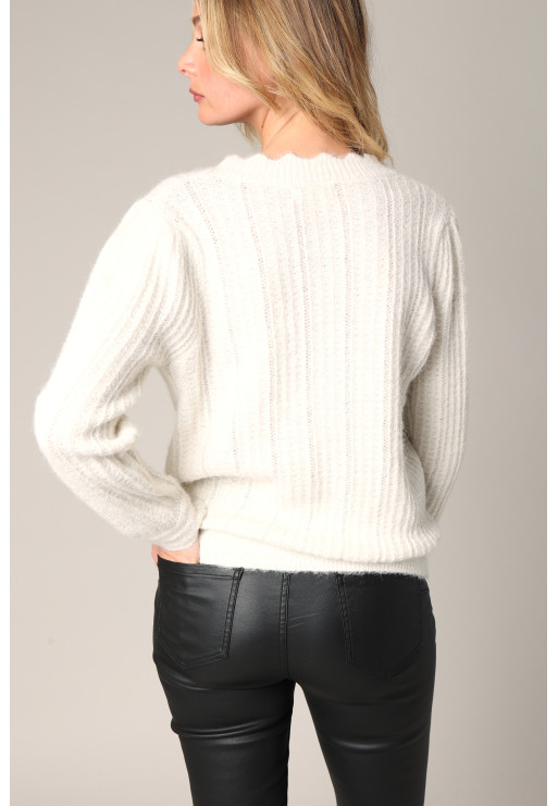 Avec sa coupe droite, son col rond délicatement côtelé et sa maille duveteuse, le pull CARTY incarne l'élégance sans effort. On apprécie le jeu de textures en fines côtes qui lui donne un charme discret mais certain. Idéal pour réchauffer une silhouette avec douceur, il s’associe aussi bien à un pantalon ajusté qu’à une jupe fluide pour des looks confortables mais toujours raffinés.