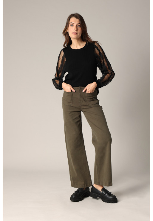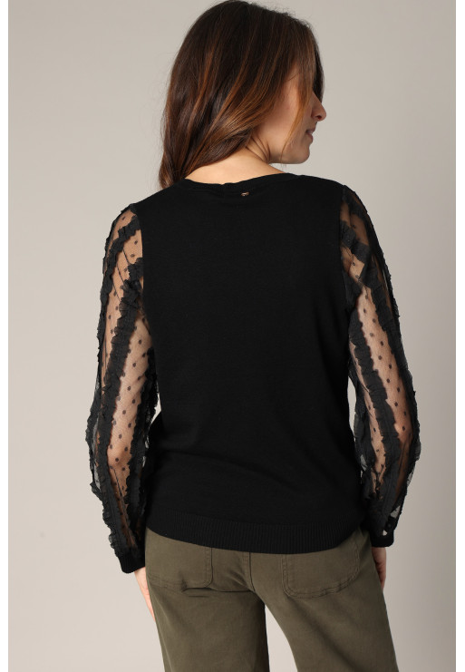 Pull en maille fine avec empiècements en tulle brodé