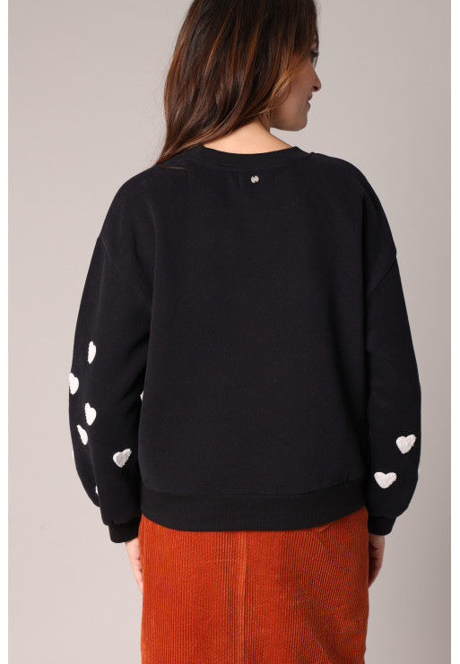 Ce sweat à manches longues mise sur l'amour du détail avec ses adorables petits cœurs en relief répartis sur les manches, comme une déclaration de tendresse pour vos looks décontractés. Sa coupe droite et son col rond classique en font un basique confortable, tandis que ses manches légèrement bouffantes apportent une note féminine. Un modèle parfait pour réchauffer vos journées avec style — et pourquoi pas attirer quelques compliments en chemin ?