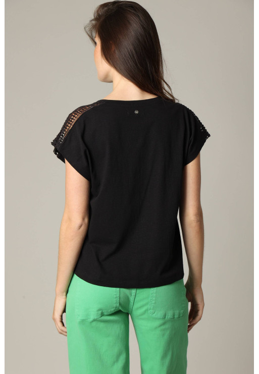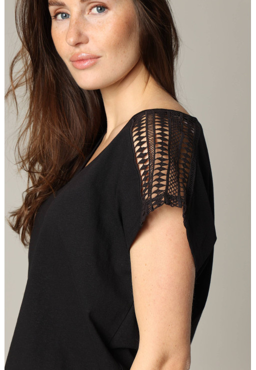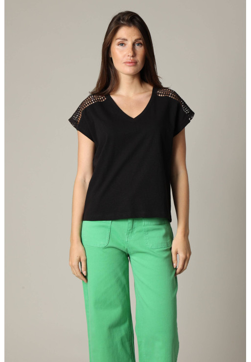 Le t-shirt IVANA est très doux sur la peau avec son jersey mélangé lin. Il est à la fois confortable pour une utilisation quotidienne et très élégant avec ses détails en dentelle sur les épaules. Son style basique fantaisie permet de dynamiser vos tenues de tous les jours.