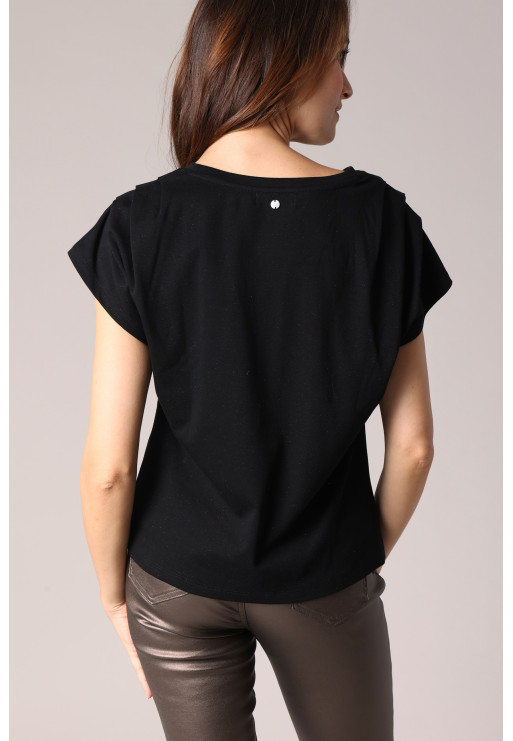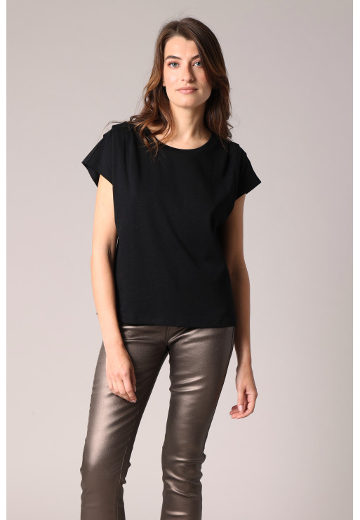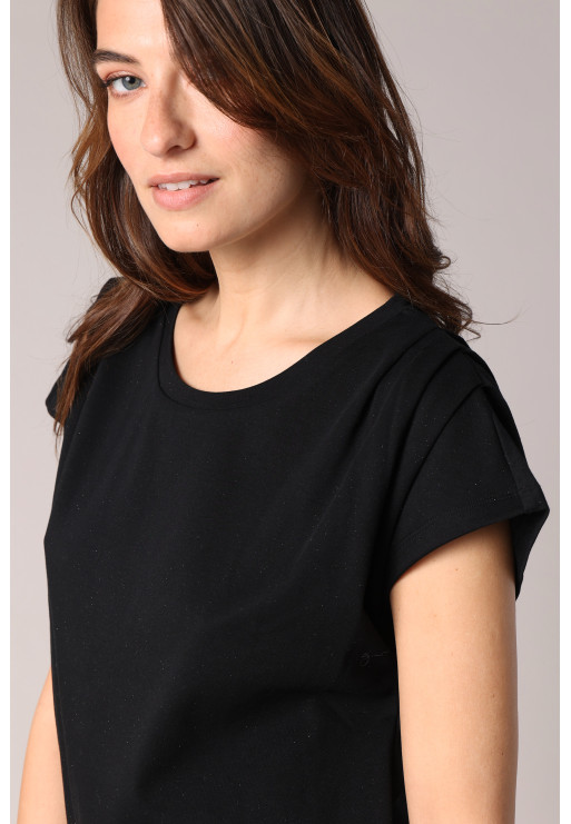 Le t-shirt TARYNA allie simplicité et raffinement grâce à une coupe droite et fluide, facile à porter au quotidien. Ses manches courtes se démarquent avec un effet plissé subtil qui apporte du volume tout en conservant une allure épurée. Le col rond met en valeur le haut du buste, tandis qu’un badge discret positionné dans le haut du dos vient signer le modèle avec modernité. Ce t-shirt se marie aisément à un jean, un pantalon fluide ou une jupe, et se porte aussi bien en journée qu’en soirée pour un look casual chic.