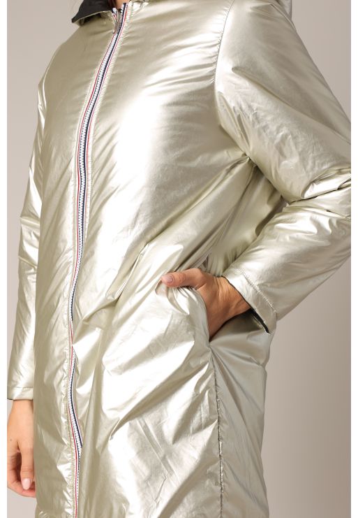 Réversible, elle alterne entre côté métallisé futuriste et face sobre chic, selon l’humeur du jour.