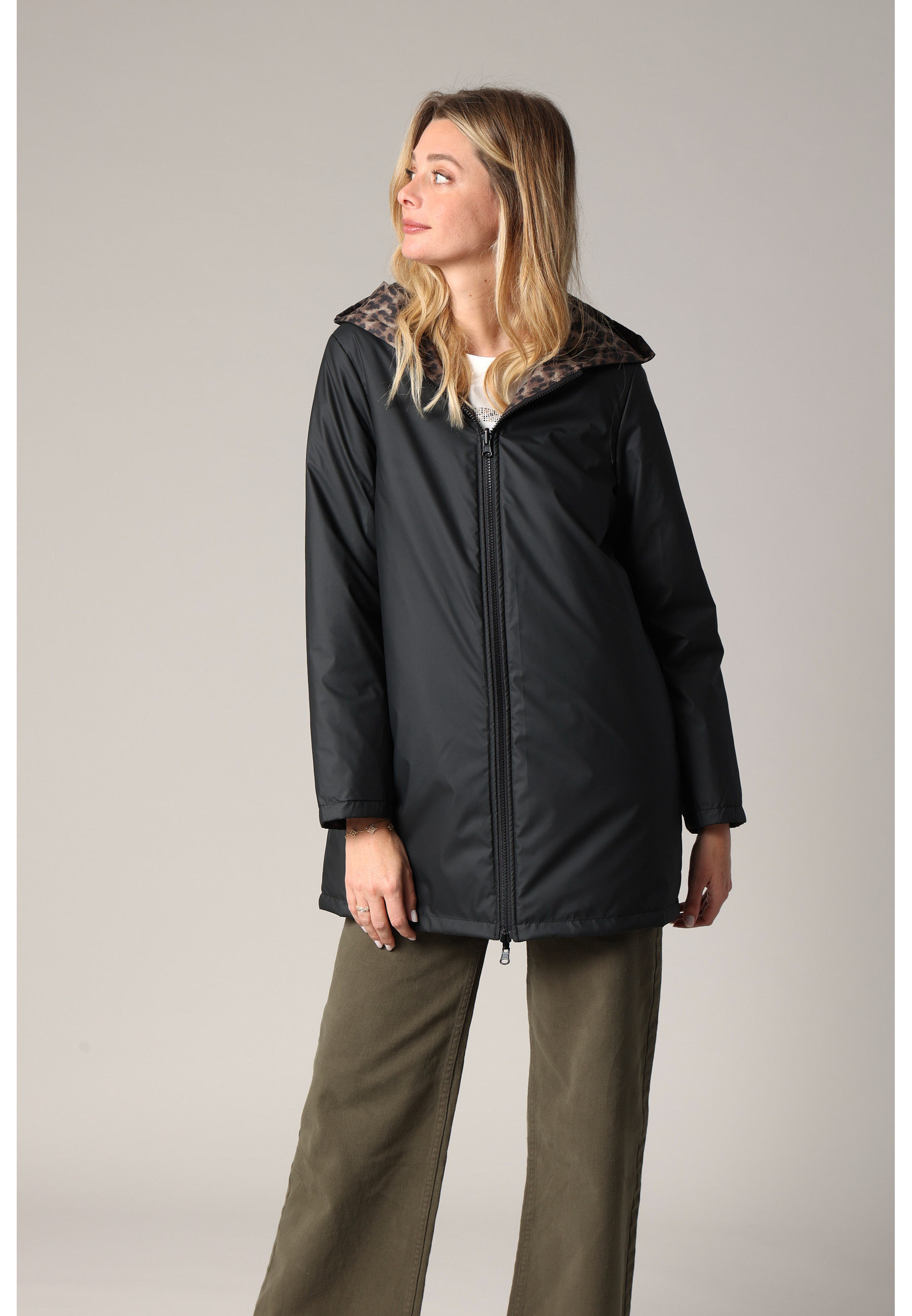 Manteau long réversible, un côté uni et un côté imprimé léopard