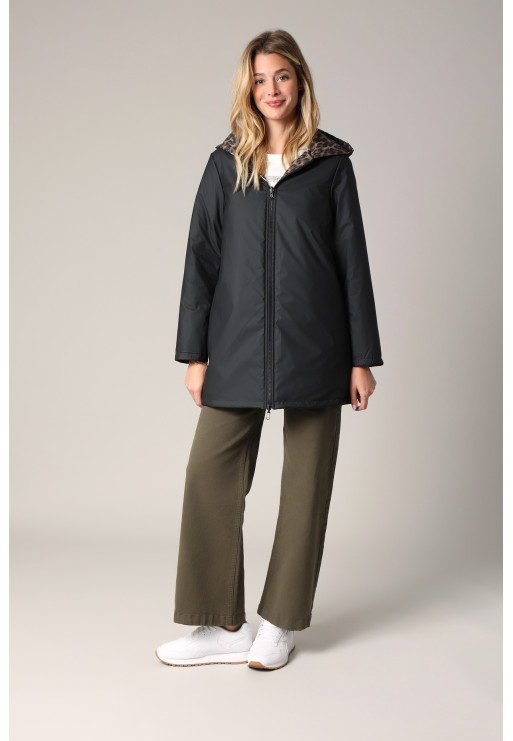 Ce manteau deux-en-un est une invitation à changer de peau en un clin d'œil. Côté pile, sobre et épuré pour accompagner les looks du quotidien. Côté face, un imprimé léopard envoûtant qui transforme l’allure en quelques secondes. Sa coupe fluide et droite permet un confort maximal, tandis que la capuche intégrée et la fermeture zippée protègent efficacement des caprices du temps. Pratique et stylé, ce modèle polyvalent ne manque pas d’audace et s’adapte à toutes les humeurs. À retourner sans modération.