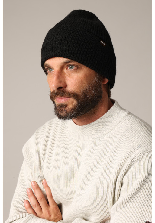 Ce bonnet en maille côtelée incarne l’alliance parfaite entre confort et sobriété.