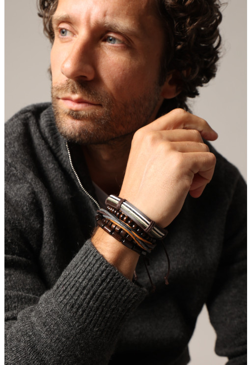 Accessoire pour homme tendance et original, le lot de bracelets MORPHO se compose de plusieurs liens contrastés dans un esprit bohème et décontracté.