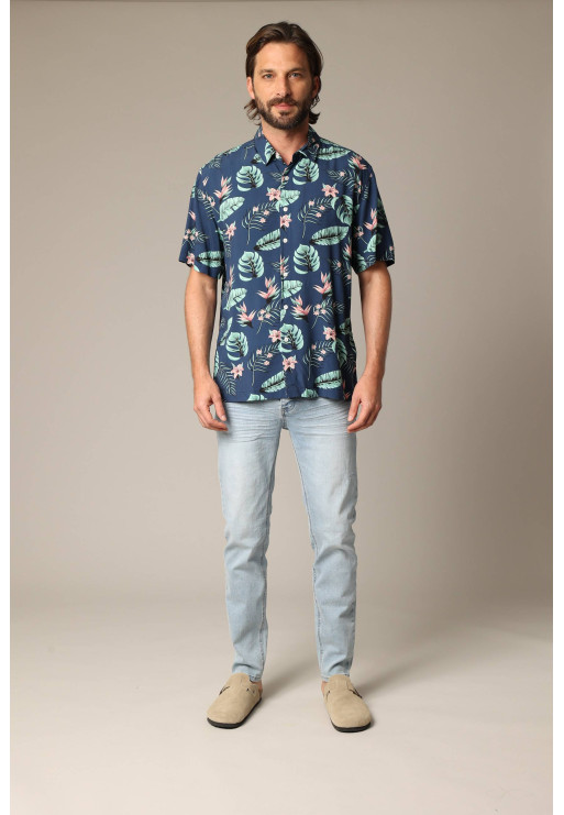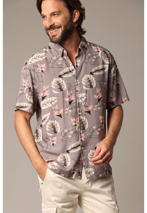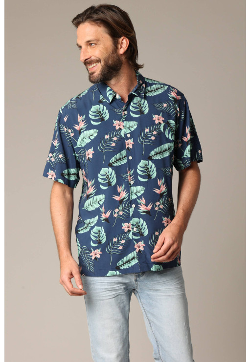 Chemise homme tropicale et décontractée en viscose