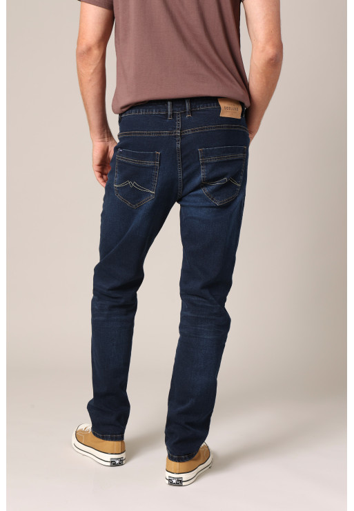 Il se distingue par ses surpiqûres contrastées, ses cinq poches et ses broderies originales sur les poches arrière.