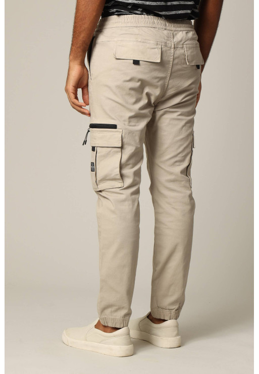 Pantalon cargo en coton avec taille élastiquée et cordon