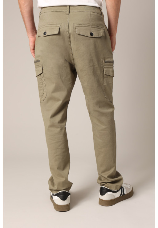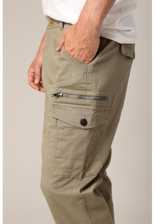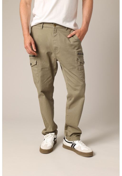 Pantalon cargo pour homme DANASON. Ce modèle casual présente une coupe droite légèrement fuselée, avec des poches plaquées à rabat au dos et sur les côtés, ainsi qu'une poche zippée sur chaque cuisse pour un style utilitaire.