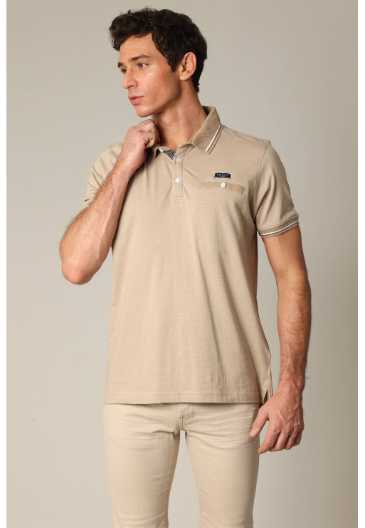 Polo en coton avec col, poche avant et manches à détails contrastants