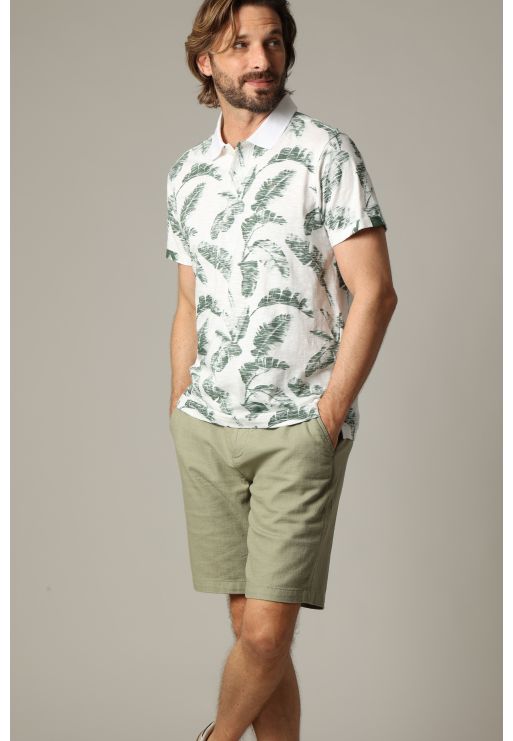 Le polo homme DENNIS est une pièce idéale pour les saisons printemps-été. Confectionné en jersey slub 100% coton, il offre une texture légère et un confort optimal. Sa finition garment wash ajoute une touche de modernité et de caractère. Doté d’un col polo orné d’un imprimé feuilles à l’intérieur, ce modèle classique se distingue par son style subtil et élégant. Parfait pour des tenues casual ou légèrement habillées, le polo DENNIS s’associe facilement avec des shorts ou des pantalons en toile pour un look estival réussi.
