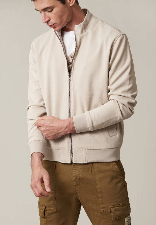 Confectionnée en tissu piqué, cette veste offre une coupe classique légèrement cintrée qui met en valeur la silhouette masculine. Son col montant souligne la mâchoire, ajoutant une touche sophistiquée à votre look.
