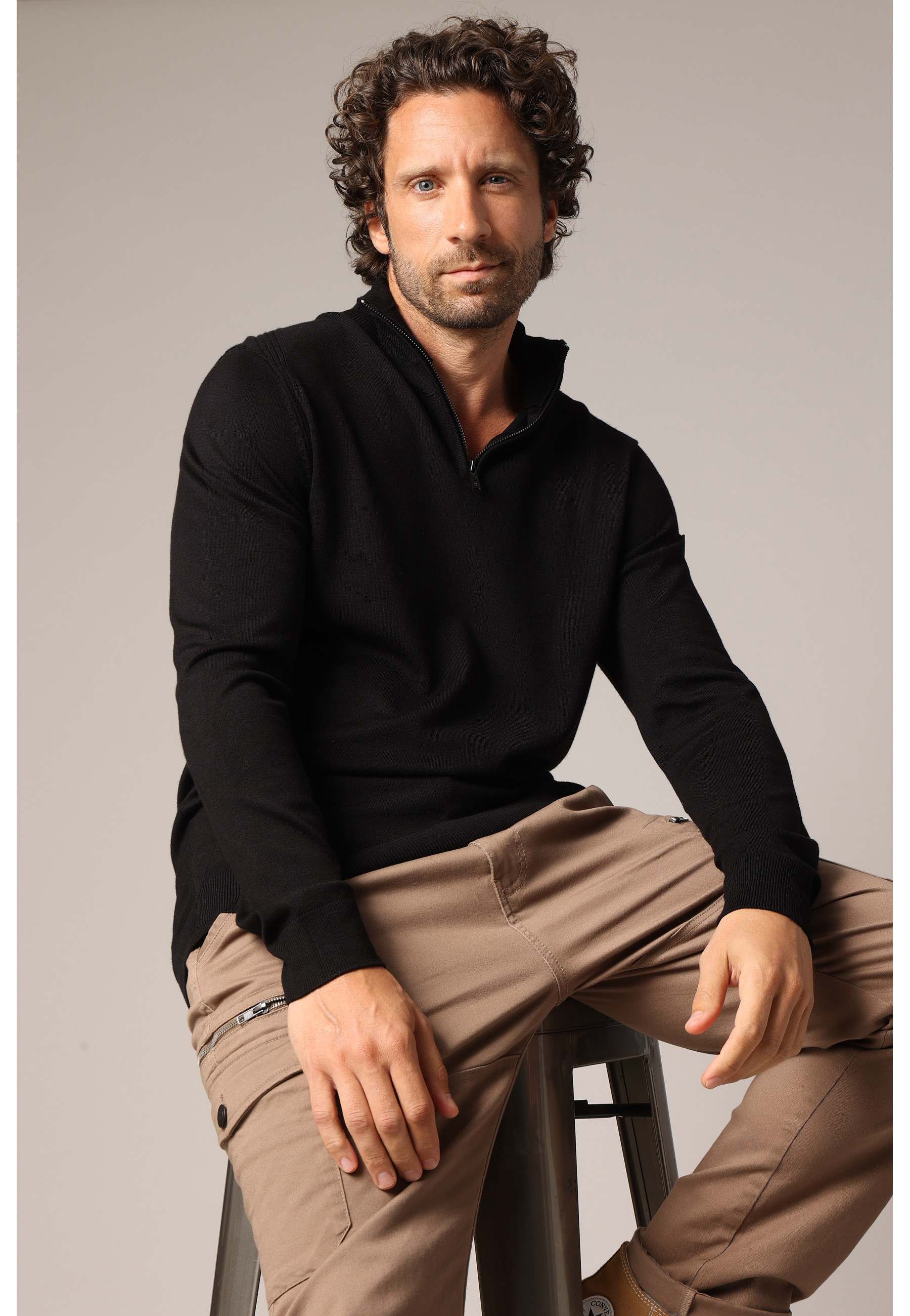 Pull pour homme ALMANACH, au style casual et confortable, confectionné en maille fine et douce. Ce modèle présente un col montant zippé qui ajoute une touche moderne tout en permettant d’adapter l’ouverture selon les envies. La coupe droite et les finitions bord-côtes assurent une silhouette nette et structurée. Un patch discret est cousu sur la manche gauche pour une note urbaine élégante.