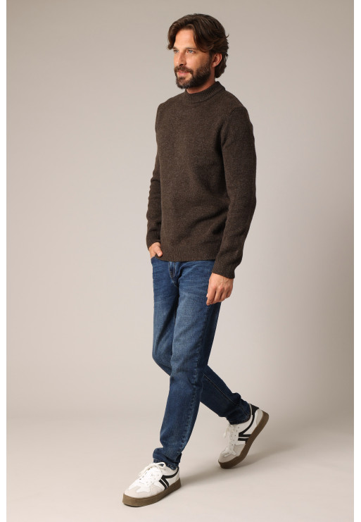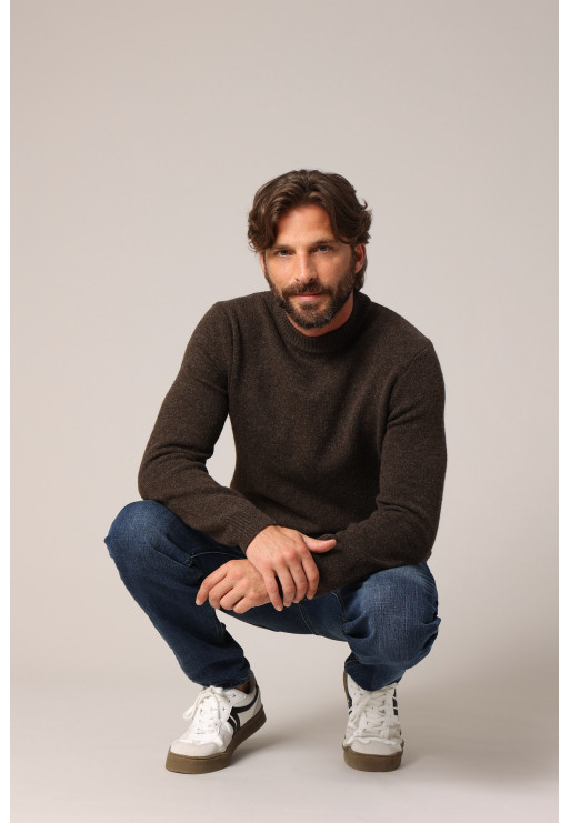 Sa maille chinée lui confère un aspect texturé et chaleureux.